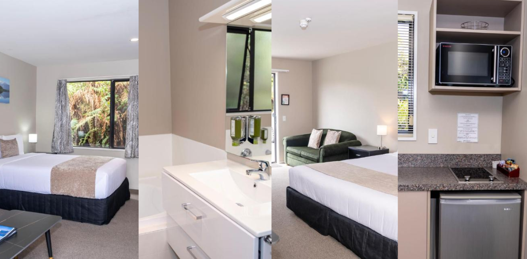 Guests can choose from well-appointed studios and spacious family units, each designed with practicality and relaxation in mind. Enjoy self-catering facilities, plush bedding, and inviting interiors that provide a restful retreat after a day exploring glaciers, rainforests, and scenic trails.