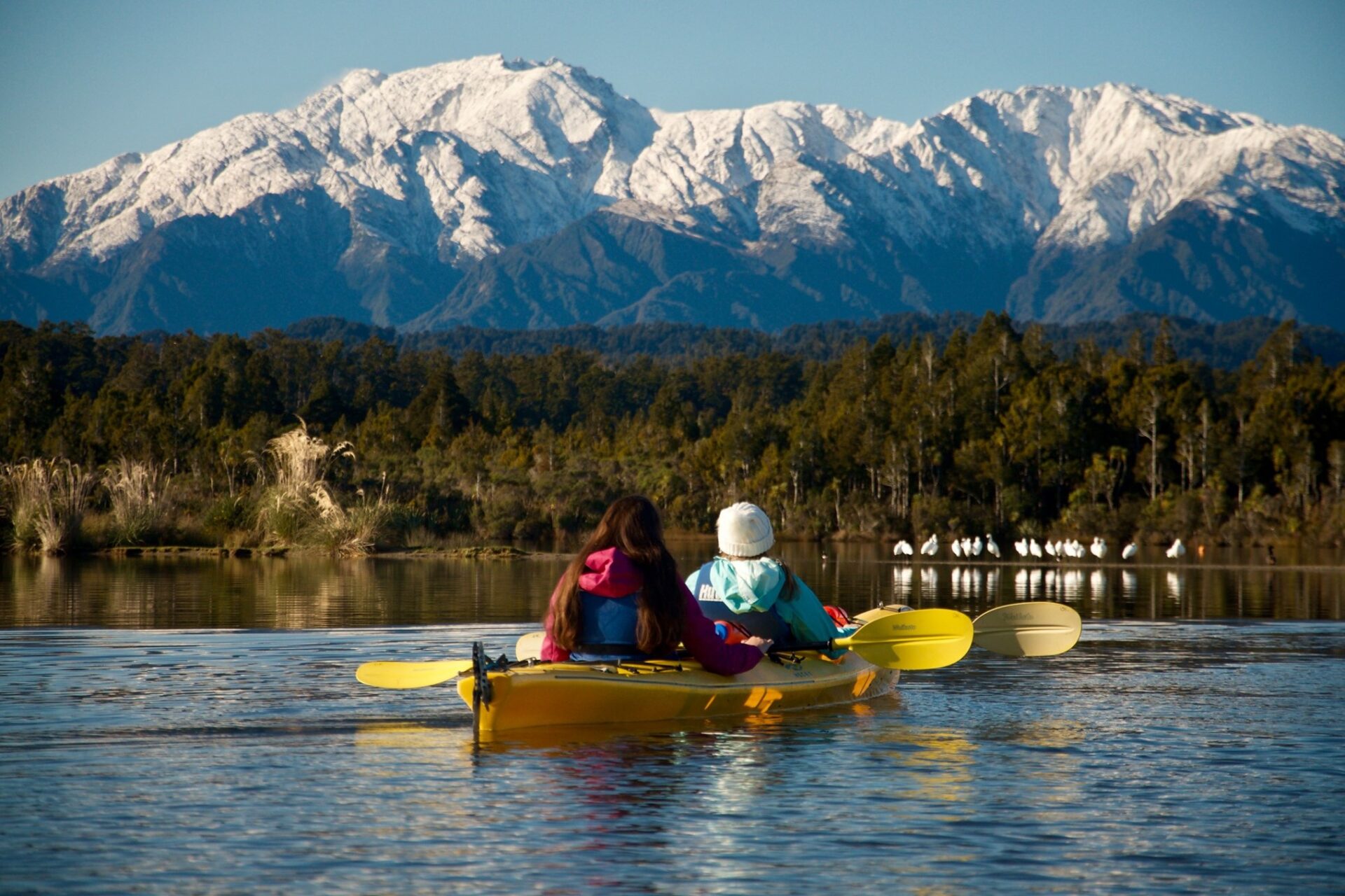 Ōkārito Kayaks offers a magical way to discover the untouched beauty of New Zealand’s largest unmodified wetland. Just north of Franz Josef, the tranquil waters of Ōkārito Lagoon are surrounded by lush rainforest, tidal flats, and sweeping views of the Southern Alps, including Aoraki/Mount Cook on a clear day.