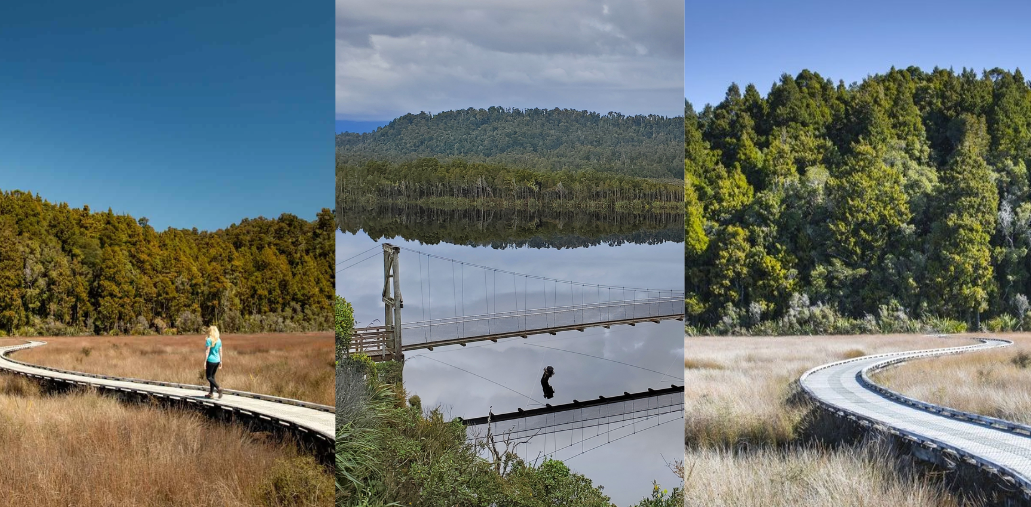 The Ōkārito Trig walk initially follows the Ōkārito Wetland Walk and Three Mile Pack Track before branching off to the left after around10-15 minutes walking. The walk winds gently uphill on a well-graded track, before reaching the Ōkārito Trig viewpoint.