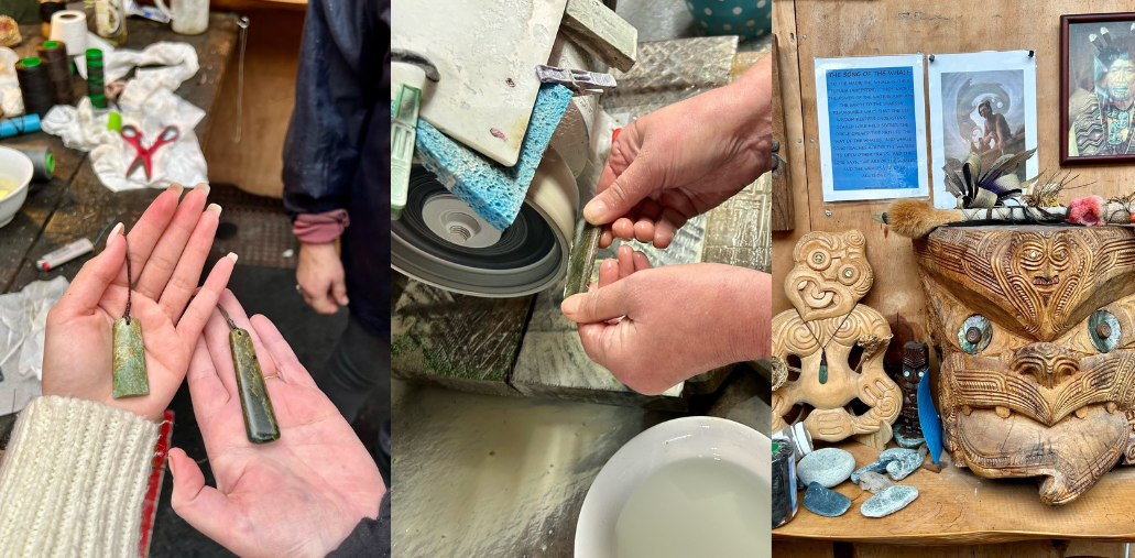 Renowned for skilled artisans, the workshop transforms locally sourced pounamu (greenstone/ jade) into jewellery and sculptures.