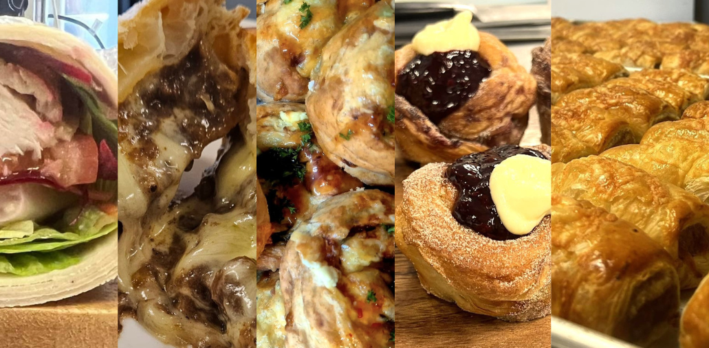 The cafe powers through their in-house prep – and the cabinets are full of flaky pastry delights – both sweet and savoury. The menu includes gluten-free offerings, treats for the car journey, or a full sit-down lunch.
